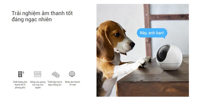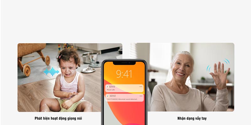 EZVIZ C6 sẽ cảnh báo cho bạn nếu mức độ tiếng ồn đột ngột thay đổi – cho dù con bạn khóc hay còi báo động nổ ra. Các thành viên trong gia đình bạn cũng có thể chỉ cần vẫy tay vào camera để bắt đầu cuộc gọi điện video đến điện thoại của bạn.