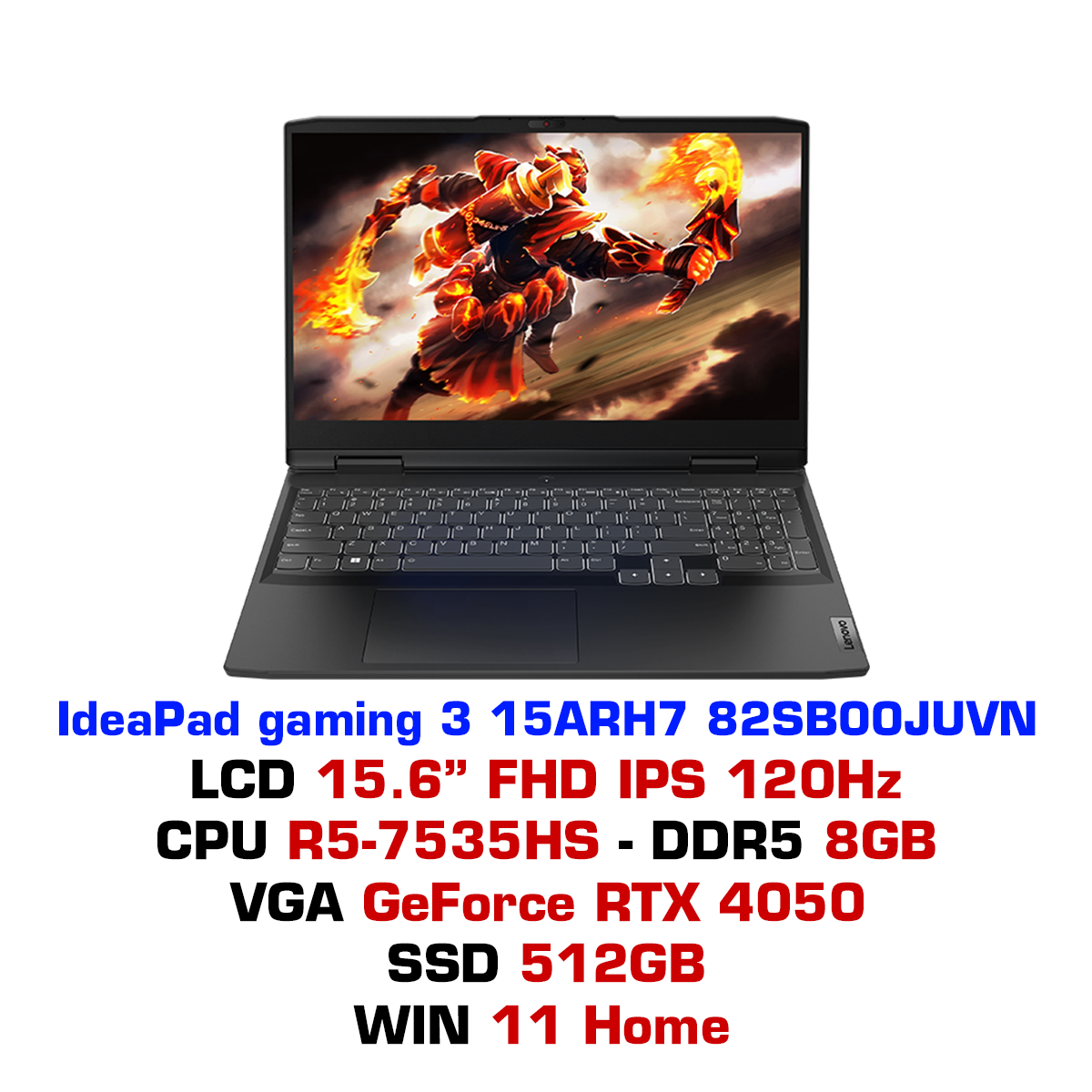 Laptop Lenovo Ideapad Gaming 3 15ARH7 82SB00JUVN (Ryzen 5 7535HS | 8GB | 512GB SSD | RTX 4050 6GB | 15.6 inch FHD IPS | WIn 11 | Xám)