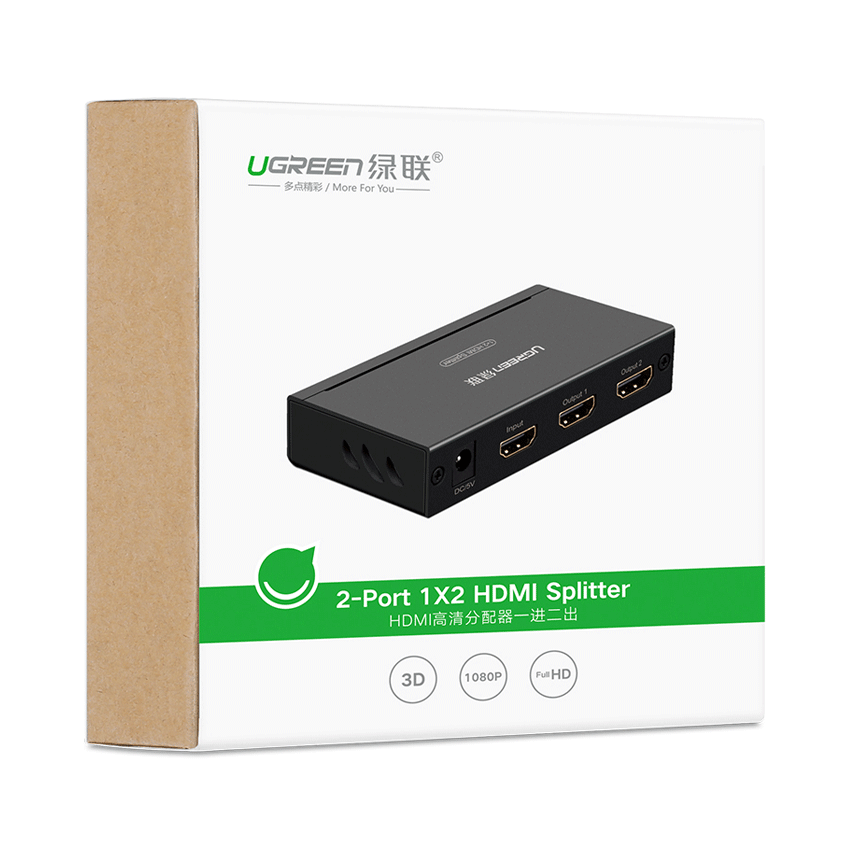 - Bộ chia tín hiệu HDMI Ugreen 40201 giúp bạn chia tín hiệu HDMI từ Laptop, Đầu kĩ thuật số, Xbox, Android TV Box...chuẩn HDMI sang 2 cổng màn hình TV HD khác nhau một cách dễ dàng.